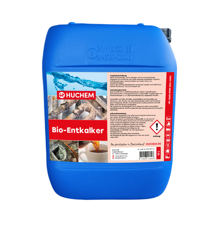 Der Hauptunterschied zwischen unserem industriellen Entkalker und dem Bio-Entkalker liegt in der Zusammensetzung und dem Einsatz. Der industrielle Entkalker basiert oft auf stärkeren chemischen Säuren und ist für schwere industrielle Anwendungen konzipiert, bei denen hartnäckige Kalkablagerungen entfernt werden müssen.