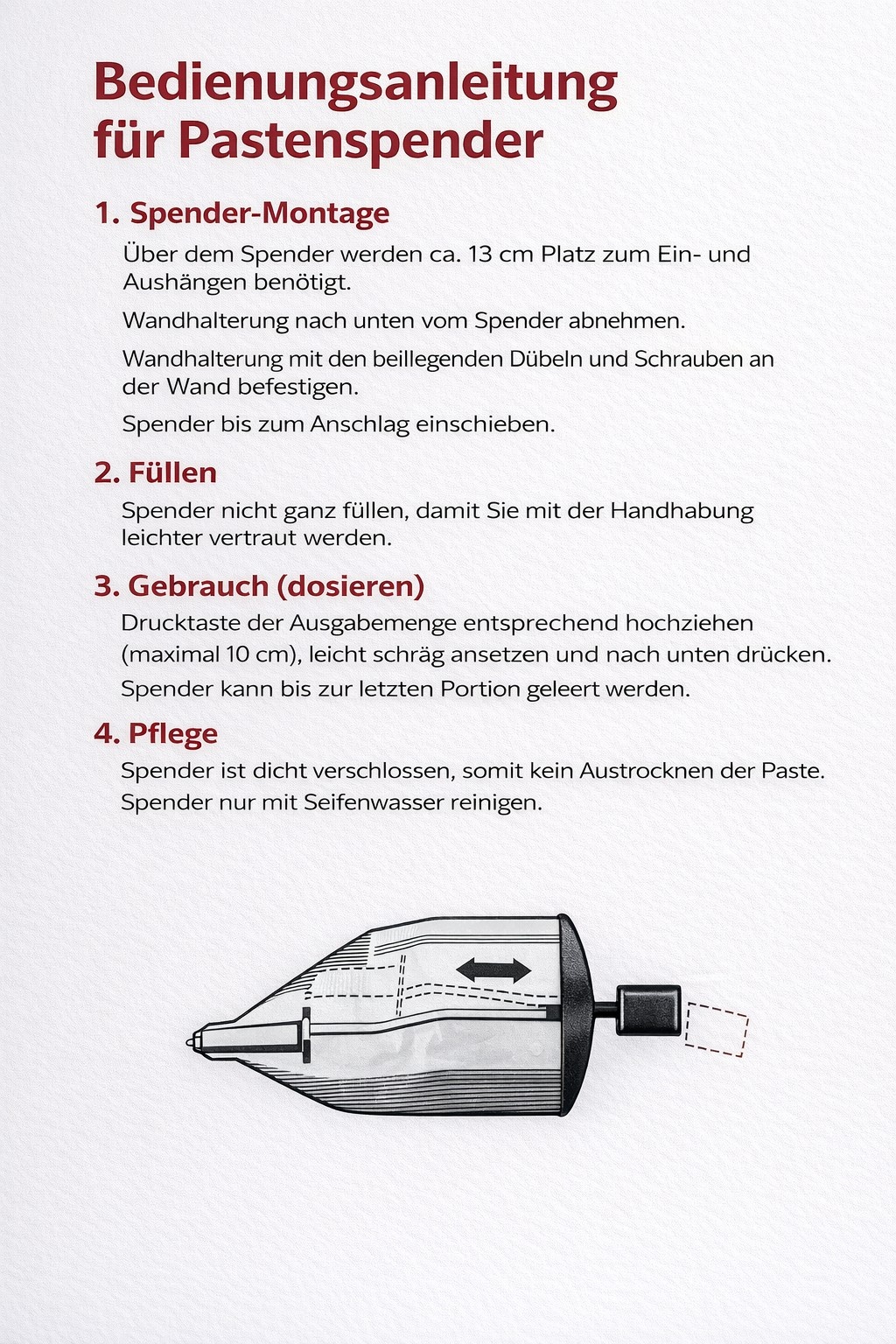 Dank des durchdachten Designs ermöglicht der Spender eine präzise Dosierung, wodurch Produktverluste minimiert und die Handwaschpaste optimal genutzt wird. Das stabile Gehäuse ist für den intensiven täglichen Einsatz ausgelegt und lässt sich leicht reinigen.