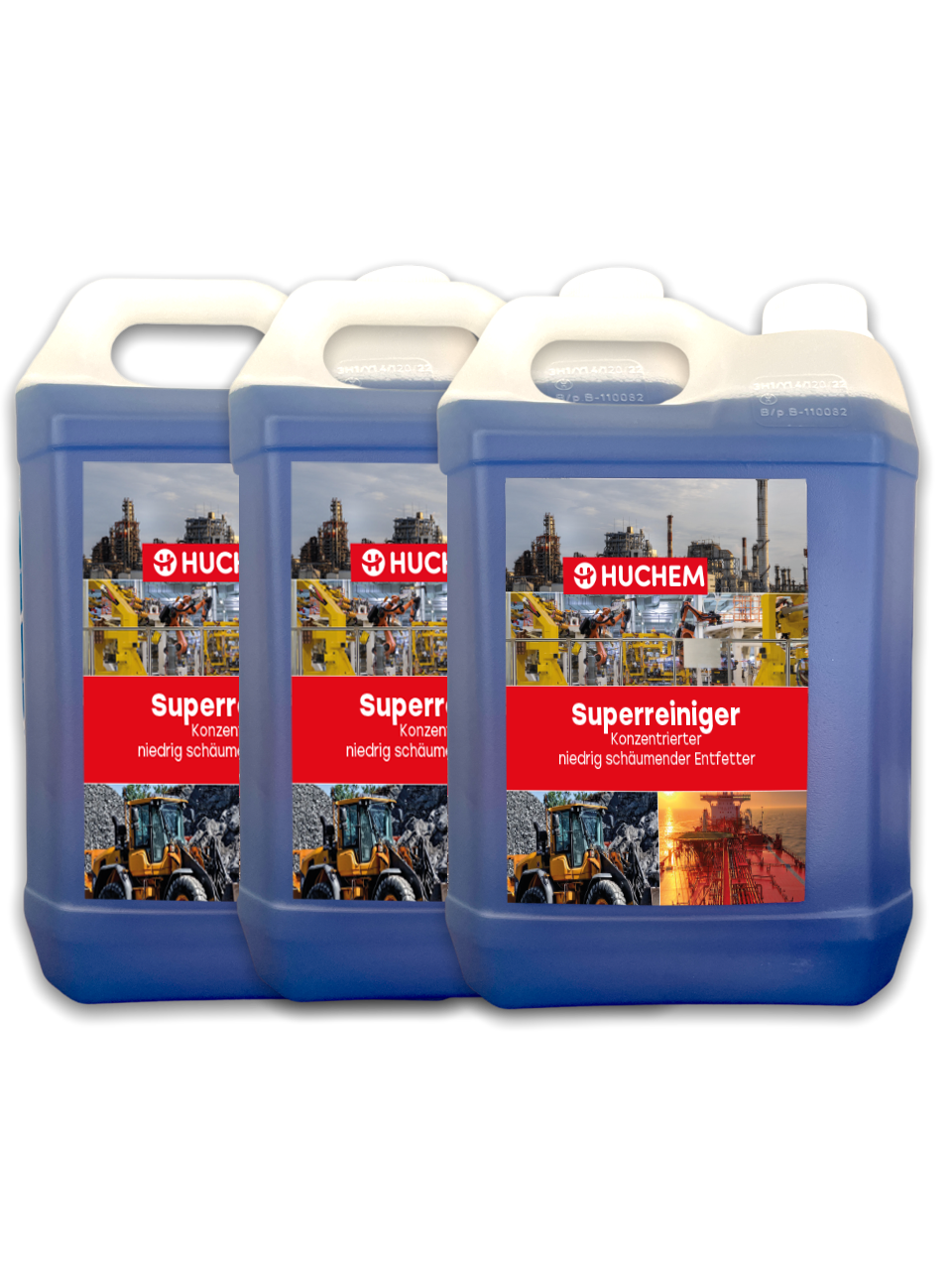 Huchem Superreiniger/Shipclean ist ein konzentrierter, schaumarmer, starker Reiniger, der je nach Verschmutzung in jedem Verhältnis mit Wasser verdünnt werden kann. Der Reiniger kann als Allzweckreiniger, für stark verschmutzte Maschinen und für industrielle Verschmutzungen verwendet werden. Huchem Superreiniger kann mit einem Schwamm, Tuch, Besen, Mopp, Bürste und Hochdruckreiniger verarbeitet werden. Er löst (starke) Verschmutzungen und ist ein kraftvoller Entfetter. Huchem Allzweckreiniger kann auf nahezu allen Obergründen eingesetzt werden, wie gestrichenem Holz, lackiertem Metall, allen Arten von wasserbeständigen (Boden-)Oberflächen, Kunststoff, Vitrinen usw.